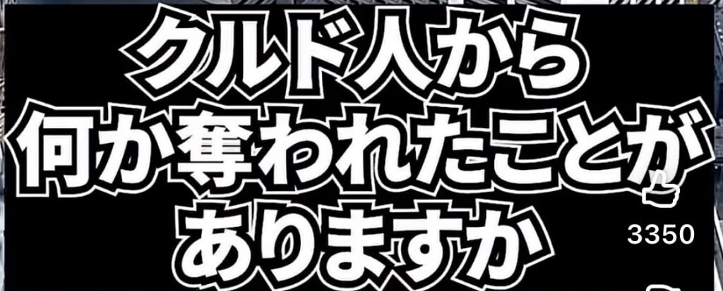 実際、クルド人に何をされたでもないのに騒いでるやつらがいることも事実で元々の発信はそうした人たちに向けてのもの。