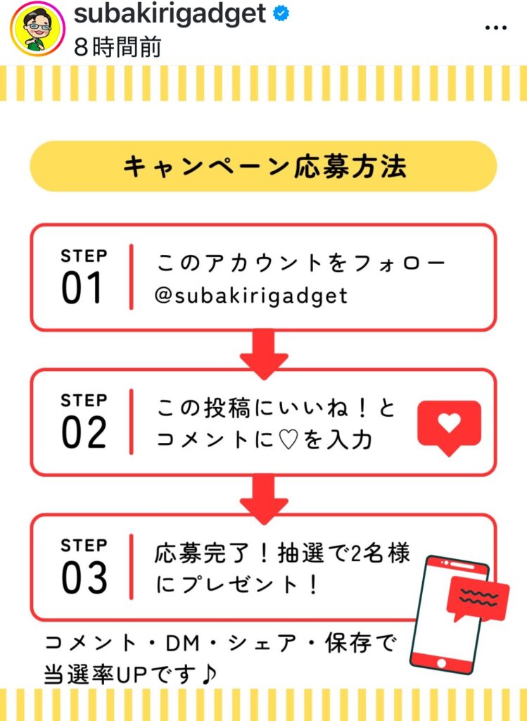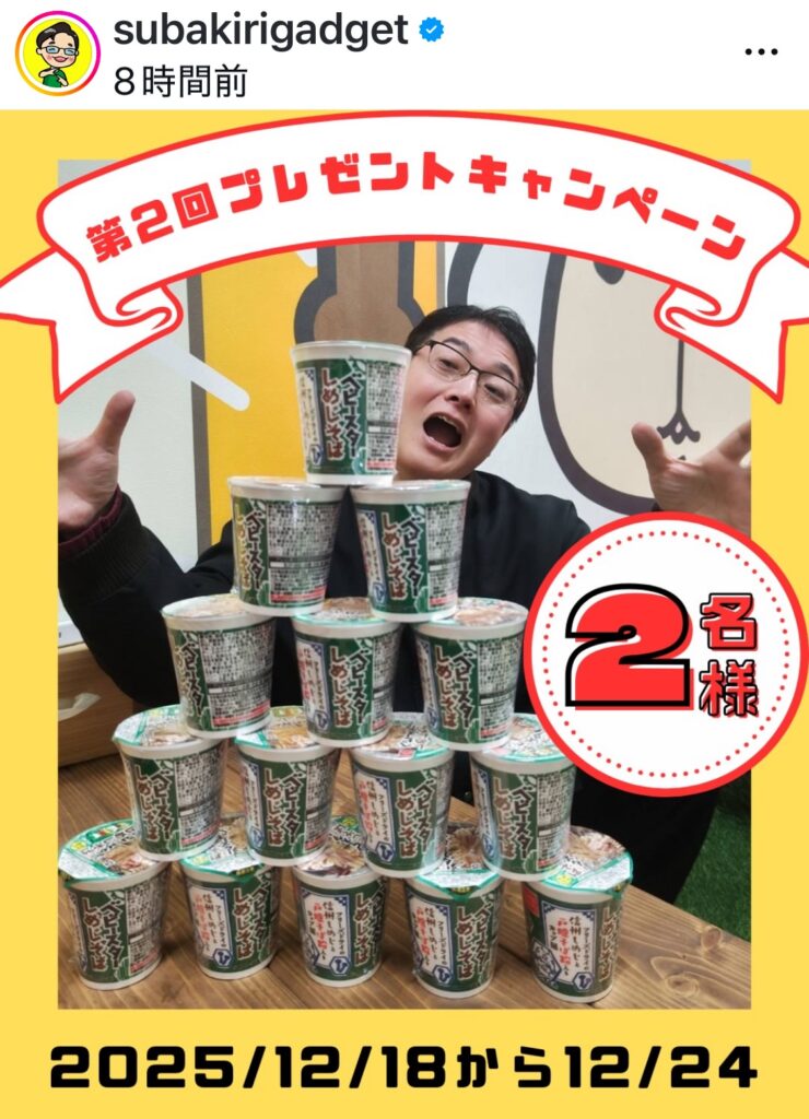 何が言いたいかっていうとスバキリ昇天がプレゼントキャンペーン企画をいろいろやりだしたので、お好きなSNSのスバキリアカウントはフォローしてチェックしてるとなんかええ事あるかもね!!っていう話でした。